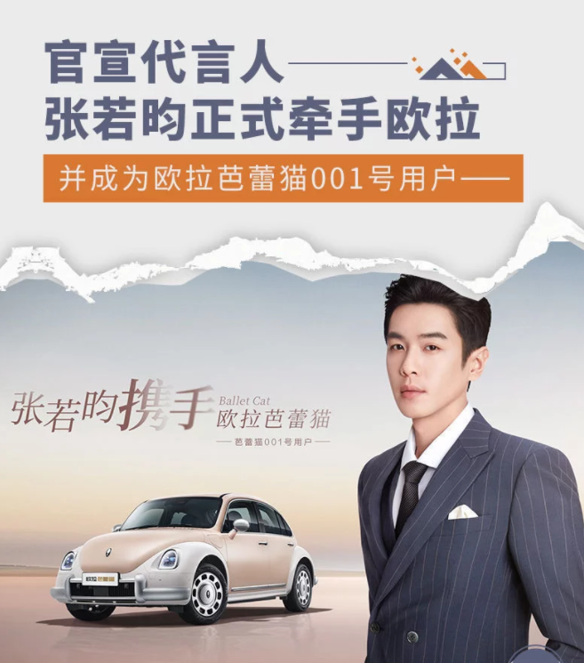 青年演員張若昀(明星代言公司)正式出任歐拉品牌代言人,并成為歐拉芭蕾貓“001號(hào)用戶”,這也是歐拉品牌首次與明星展開合作,對(duì)雙方來說都是一次全新的契機(jī)。