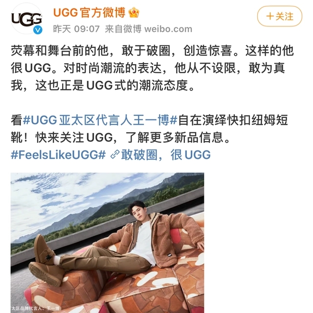 官方 UGG宣布王一博成為其亞太地區(qū)代言人