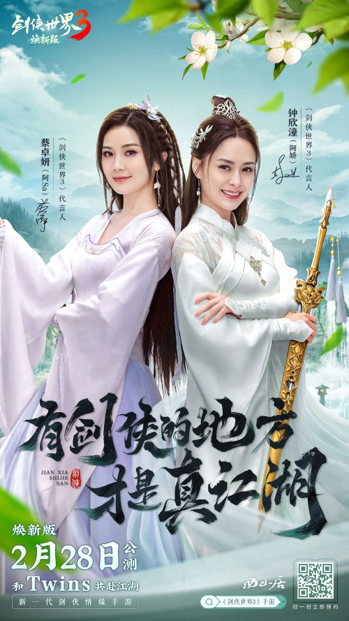 Twins雙明星合體代言 《劍俠世界3》官宣:煥新版2月28日公測