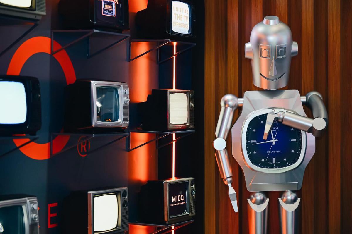自1973年電視機(jī)形表殼誕生以來,腕表融合潮流風(fēng)格與歷史元素,分別于80年代及2000年重返舞臺,掀起復(fù)古風(fēng)潮。今次,美度經(jīng)典大日歷機(jī)芯的融入令這一表款再煥光彩。為呼應(yīng)全新舵手系列TV腕表的摩登風(fēng)范,此次快閃店選址于文化底蘊與現(xiàn)代潮流交織的新天地南里,在活力繁華間,暢游靈感視界??扉W空間外觀以復(fù)古電視機(jī)為靈感,融匯極具現(xiàn)代化氣息的「美度橙」色燈帶,打造潮能風(fēng)尚空間,歷史表款與新款展露亦以別致方式詮釋著時間的迭代與空間的藝術(shù)美學(xué),彰顯瑞士美度表遵循永恒設(shè)計和實用功能相結(jié)合的制表哲學(xué)。以品牌半個世紀(jì)以來不斷推陳出新的精致時計為媒介,打破空間界限,在靈感碰撞中創(chuàng)造新巧思。誕生自1939年的美度品牌形象大使“ROBI”機(jī)器人,也驚艷亮相快閃空間,象征著美度表堅固耐用、先鋒卓越的品質(zhì)傳承。