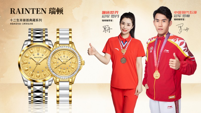 2023年9月1日機(jī)械腕表品牌RAINTEN瑞頓正式官宣,簽約蹦床世界冠軍羅丹(明星代言公司)與中國現(xiàn)代五項(xiàng)冠軍羅帥。