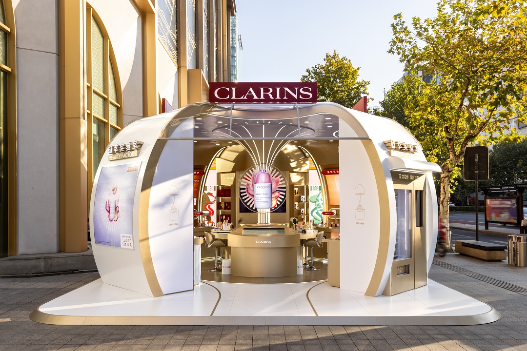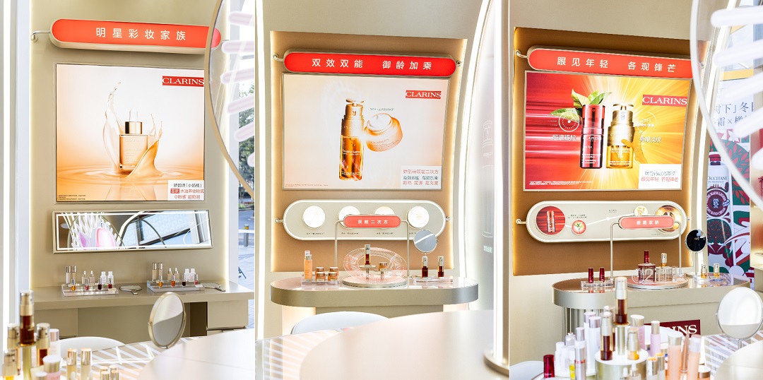 快閃店內(nèi),眾多嬌韻詩經(jīng)典暢銷產(chǎn)品環(huán)繞全場,組成雙能CP區(qū)、眼部護理區(qū)、彩妝區(qū)與煥白加速站四大區(qū)域,消費者可在此直觀了解嬌韻詩多元產(chǎn)品的植萃成分、前沿科技與卓越功效。同時,空間內(nèi)設有產(chǎn)品體驗區(qū)與領樣機,集嬌韻詩多線產(chǎn)品試用、購物與沉浸式互動于一體,展現(xiàn)品牌的領先植萃科技與獨特魅力。