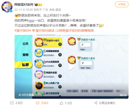 事實上,早在合作消息正式官宣的前一天,《蛋仔派對》就發(fā)布了一支充滿懸念的預熱視頻。雖然視頻只有10秒,且名為“四是四十是石”的神秘朋友只講了兩句俏皮的“Eggy”,但如此帶有暗示意味的ID和充滿磁性的聲線,還是讓不少忠實粉絲和玩家猜到了他的身份!
