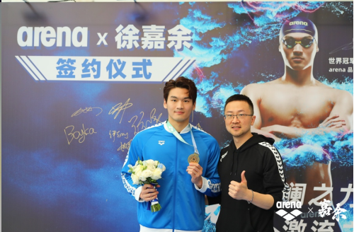 2024年3月10日, 浙江游泳隊訓(xùn)練基地,繼多年和浙江省泳隊合作的基礎(chǔ)上,arena阿瑞娜宣布徐嘉余(明星經(jīng)紀公司)作為中國品牌代言人,攜手迎戰(zhàn)巔峰,奮泳向前,以arena阿瑞娜頂尖賽事裝備與徐嘉余的杰出運動表現(xiàn),以專業(yè)相互“嘉”持,共同開創(chuàng)新的傳奇與歷史。