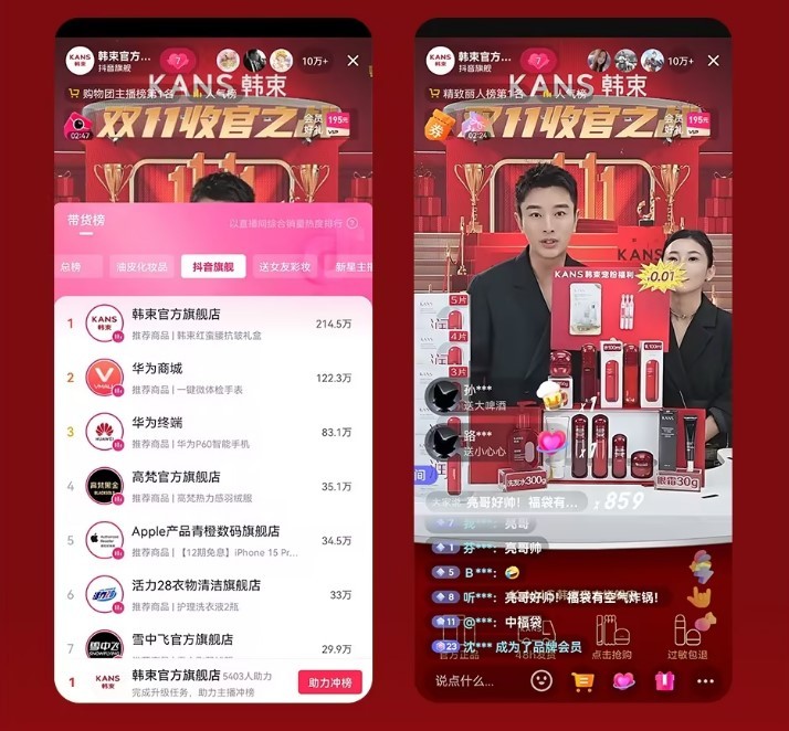 同樣在雙11期間,賈乃亮直播間韓束單品牌銷售額破4613萬(wàn)元,刷新品牌專場(chǎng)銷售額記錄,霸榜抖音5榜TOP1,通過(guò)對(duì)高品質(zhì)產(chǎn)品的深度分享,助力國(guó)貨品牌的影響力與口碑力。