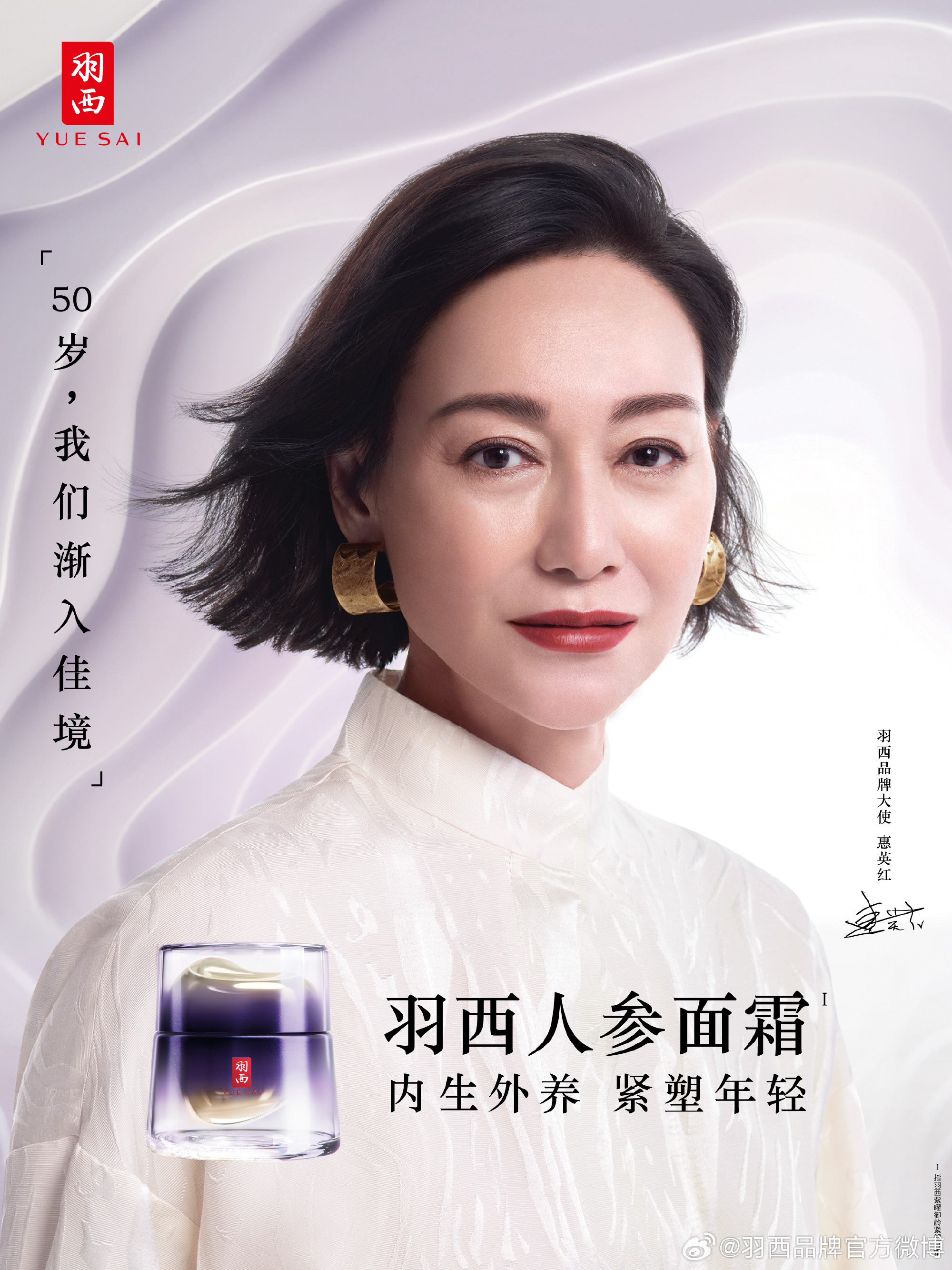 近日,歐萊雅集團旗下中式高端美妝品牌羽西,官宣演員惠英紅成為品牌大使,攜羽西人參系列陪伴 50+ 女性漸入人生佳境。