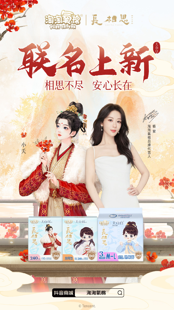 近日,淘淘氧棉與新開播電視劇《長相思 2》打造聯(lián)名新品,以品牌代言人楊紫(明星代言公司)在劇中的角色為設計靈感,打造聯(lián)名款包裝衛(wèi)生巾與品牌周邊,為粉絲觀眾帶來沉浸式追劇打 call 體驗。
