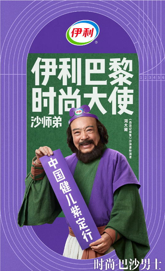 這么有中國(guó)特色的梗,伊利穩(wěn)穩(wěn)拿捏,請(qǐng)來沙和尚的扮演者劉大剛擔(dān)任伊利巴黎時(shí)尚大使,別名——時(shí)尚·巴沙男士,好家伙,這下誰(shuí)還分得清你沙和尚和時(shí)尚人士的區(qū)別。二者也帶來超有梗的短片,在頗具動(dòng)感的節(jié)奏中,沙師弟成為 8G 沖浪達(dá)人,網(wǎng)絡(luò)梗不斷,「想你的沙,還是吹向了巴黎」、「夢(mèng)幻紫、巴黎紫,咋看咋像我身上的絕絕紫」,并且親自認(rèn)證了時(shí)尚巴沙的稱號(hào),用「紫」來預(yù)祝中國(guó)健兒「紫」定行。