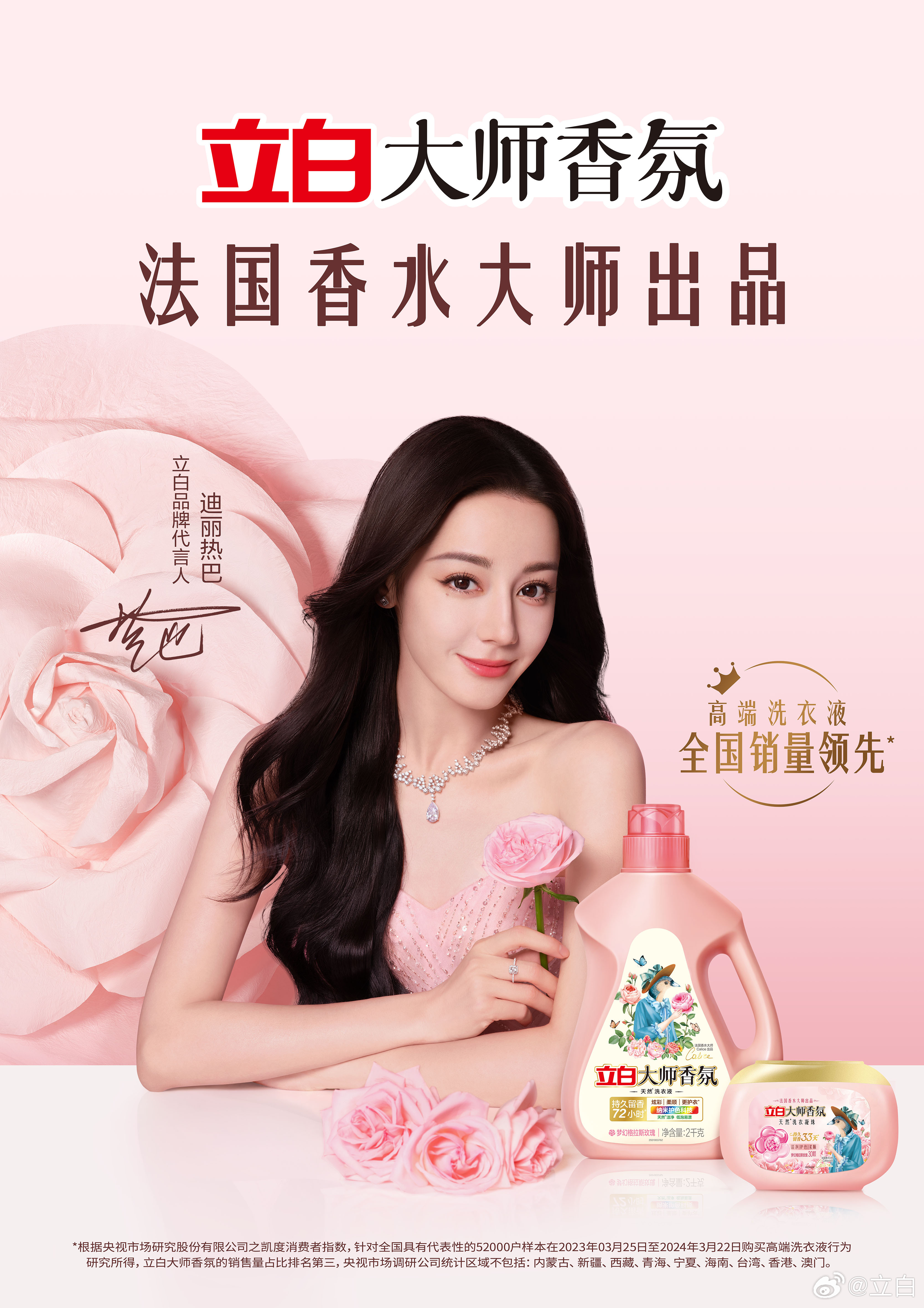 8 月 12 日,立白正式官宣迪麗熱巴(明星代言公司)為品牌代言人,同步推廣立白大師香氛系列產(chǎn)品,邀請(qǐng)消費(fèi)者一起「穿上我愛的香」。據(jù)悉,此次的香氛系列源自法國(guó)格拉斯的玫瑰香氣,讓消費(fèi)者在清潔衣物的同時(shí),感受香與時(shí)尚的無(wú)限感官之美。同時(shí),立白將一起攜手代言人探索更多時(shí)尚穿香秘訣,讓香與時(shí)尚,隨衣綻放。
