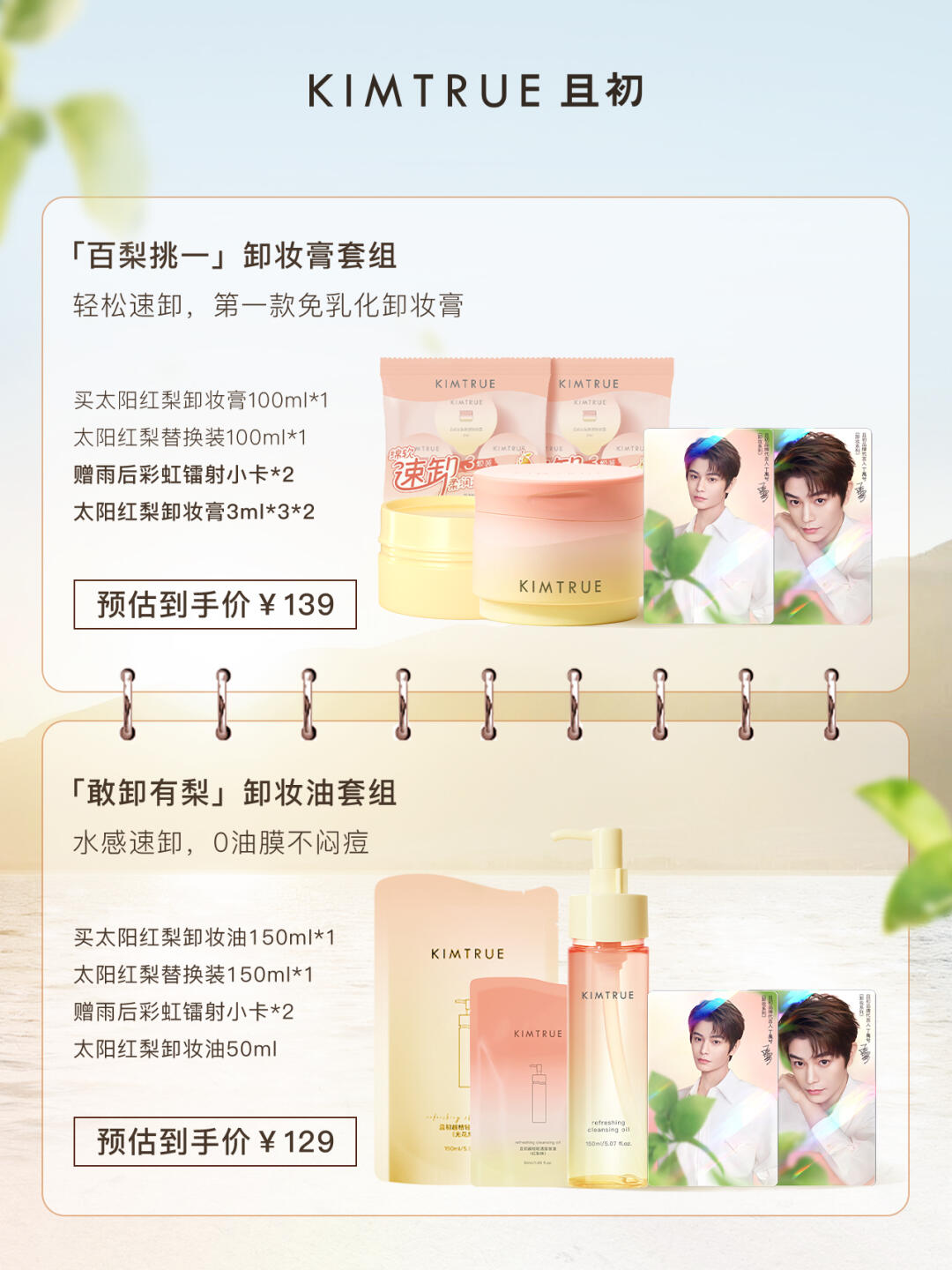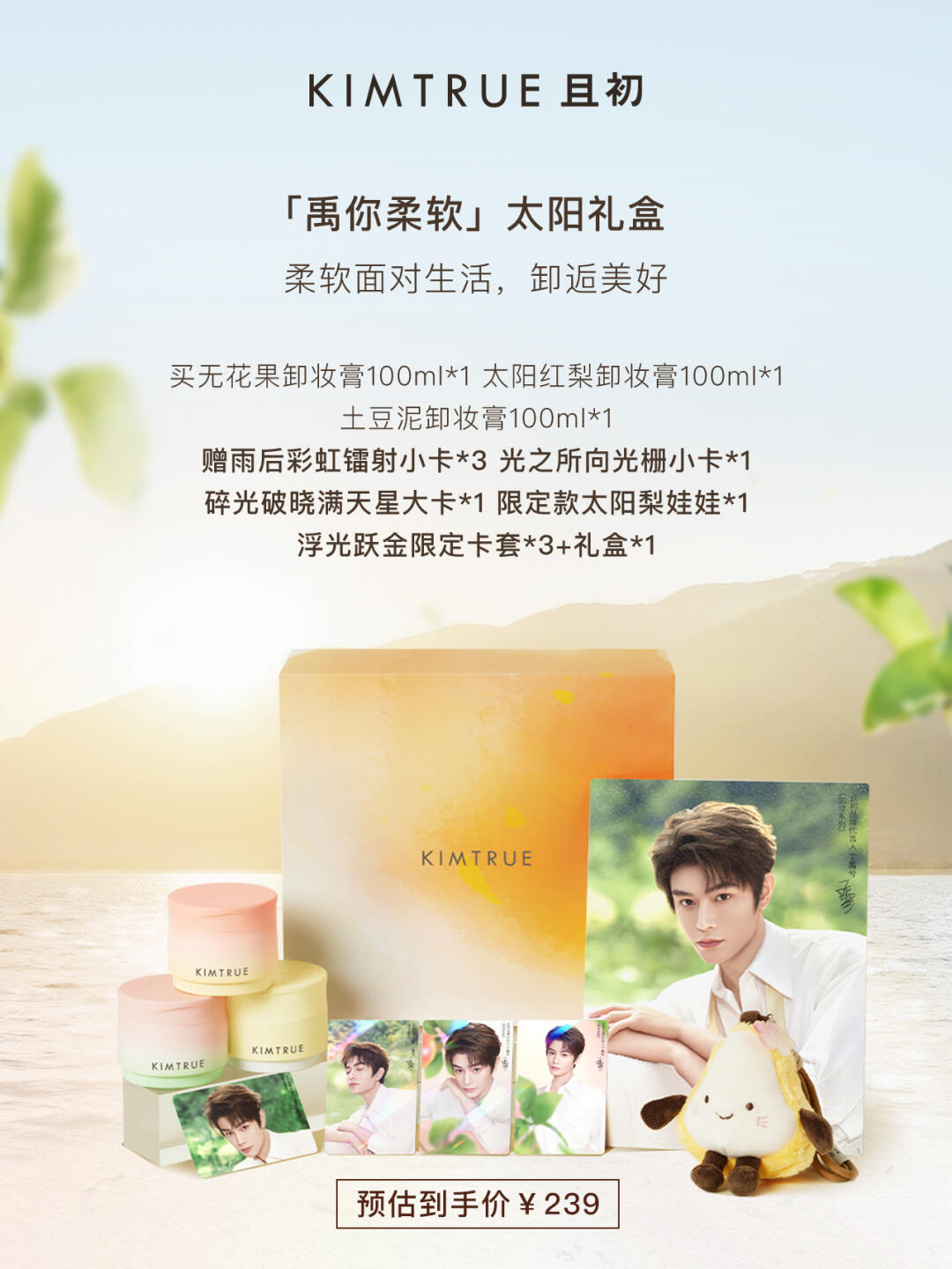 且初官宣丁禹兮(明星代言公司)為品牌(卸妝系列)代言人,系列包含「無(wú)花果卸妝膏」「太陽(yáng)紅梨卸妝膏」「土豆泥卸妝膏」等產(chǎn)品,購(gòu)買制定產(chǎn)品可獲得代言人定制精美周邊,此次周邊包含代言人小卡和限定太陽(yáng)梨娃娃,希望一起「禹」你同行。