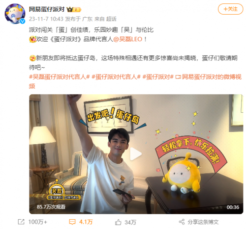 11月7日,《蛋仔派對》帶來一支官宣視頻,人氣演員吳磊將以品牌代言人的身份正式加盟樂園——不得不說,這場特殊的相遇真的是充滿驚喜!
