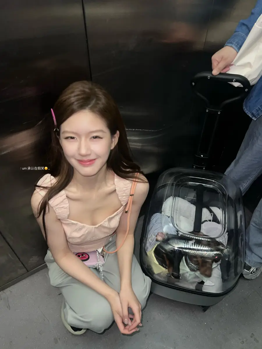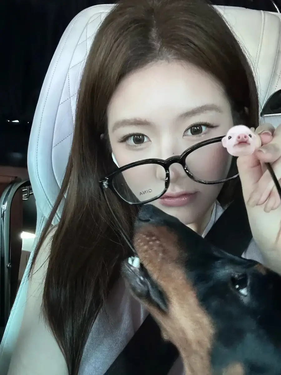 趙露思懷抱小狗假裝戴眼鏡,眼神撩人。