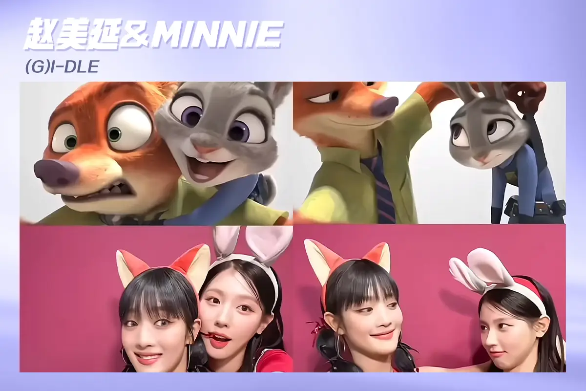 除了內(nèi)娛外,韓娛也有很多愛(ài)豆cos了朱迪尼克。比如aespa的WINTER&GISELLE,女孩子同框真的好甜呀!