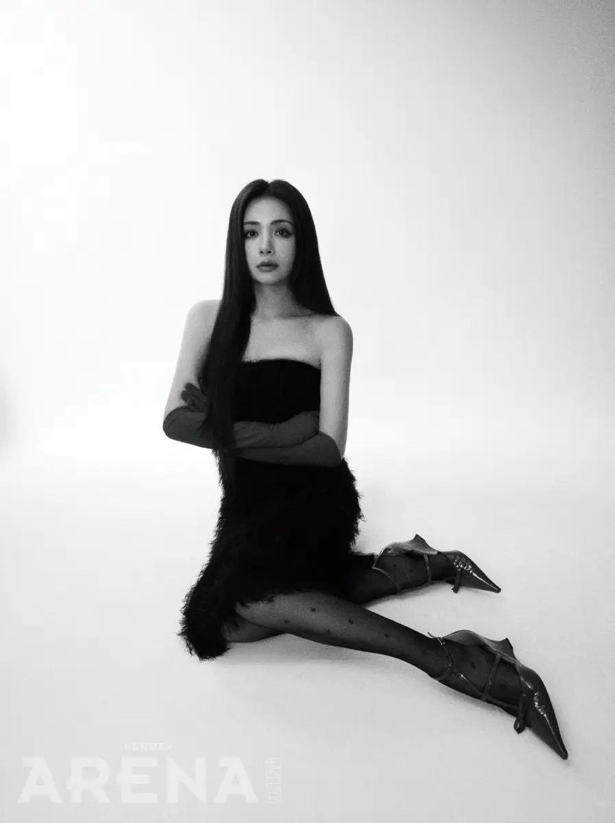 麥迪娜一身黑裙勾勒好身材。
