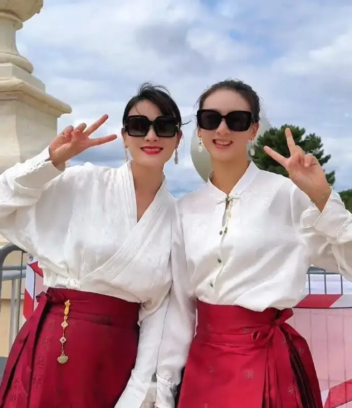 近日,葉一茜森碟曬出一組美照。她們身著紅色馬面裙,國風韻味十足。
