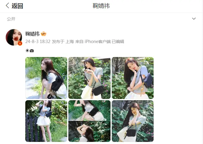 鞠婧祎曬照俏皮靈動(dòng)顯少女,秀纖細(xì)美腿惹人愛(ài),溫柔甜美如初戀