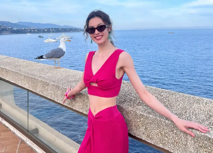 鐘楚曦曬夏日游玩照!穿芭比粉吊帶背心秀蠻腰美腿