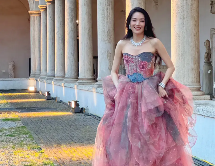 今日,關(guān)曉彤現(xiàn)身戛納穿一襲古董高定粉色禮服。