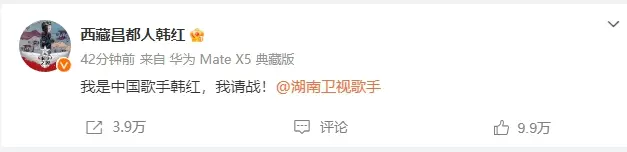 韓紅發(fā)文請戰(zhàn)《歌手》 網(wǎng)友:國家隊來了!