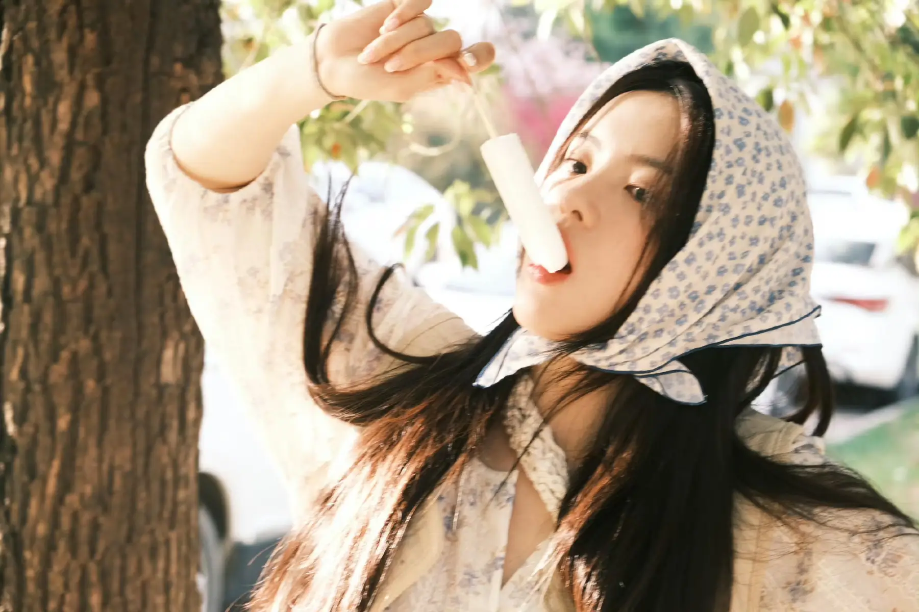 楊超越分享生活隨拍!戴頭巾吃雪糕元氣滿滿超可愛