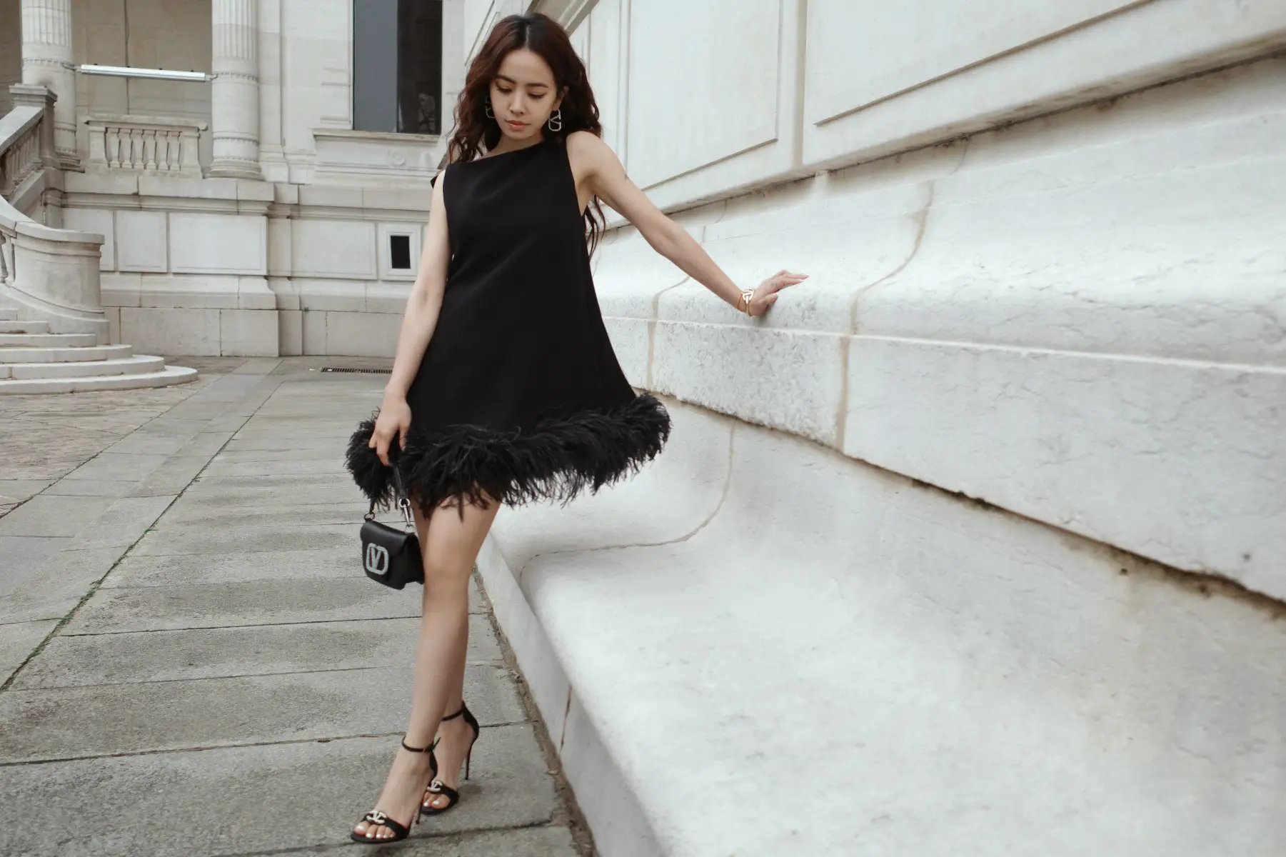 3月4日,蔡依林(明星經(jīng)紀公司)出席2024巴黎時裝周秀場穿黑色羽毛裙氣場十足!