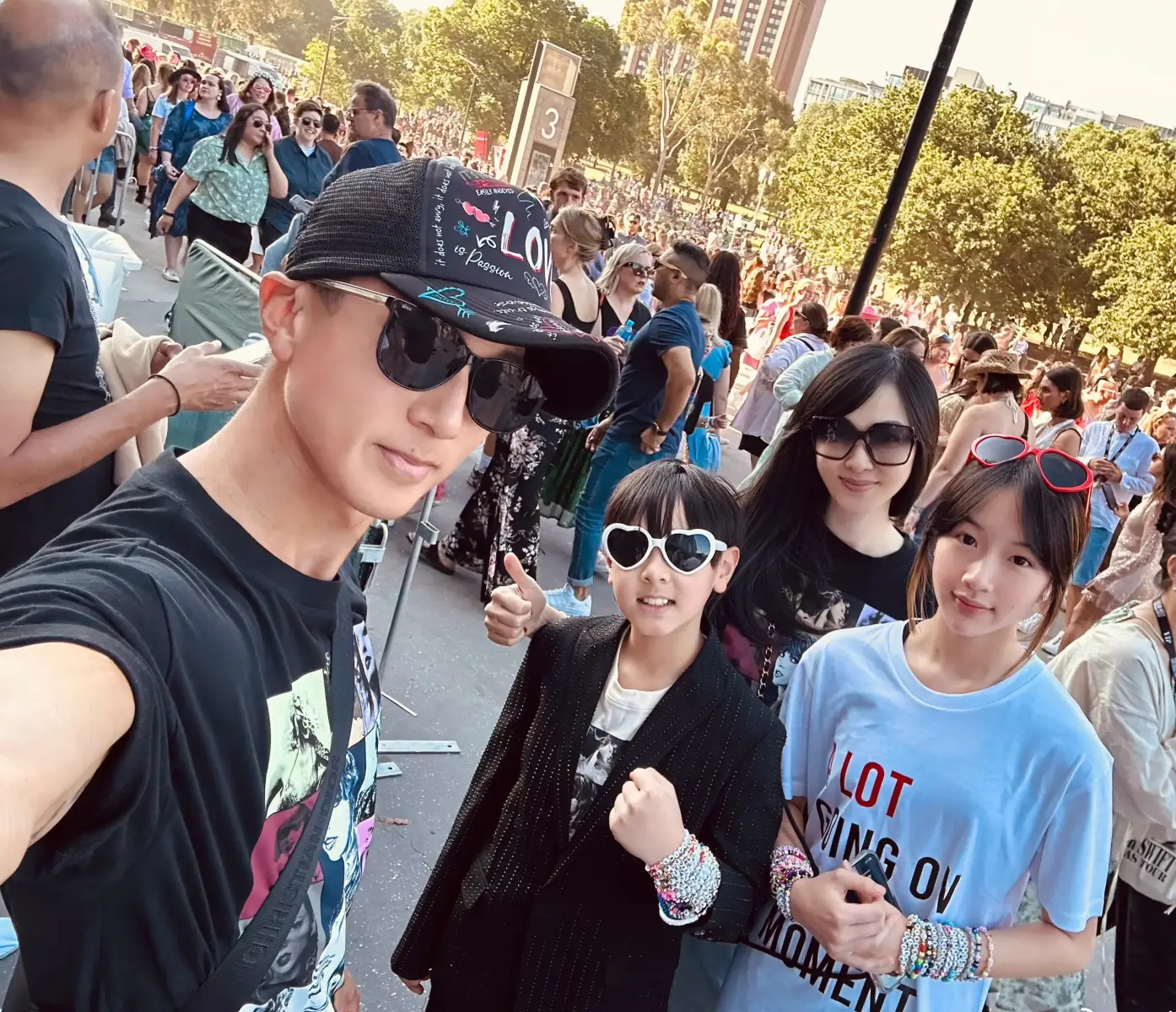 2月18日,吳尊(明星經(jīng)紀(jì)公司)在社交平臺曬出全家一起看霉霉演唱會的照片,照片里一家四口站在場館外排隊(duì),氛圍超好。