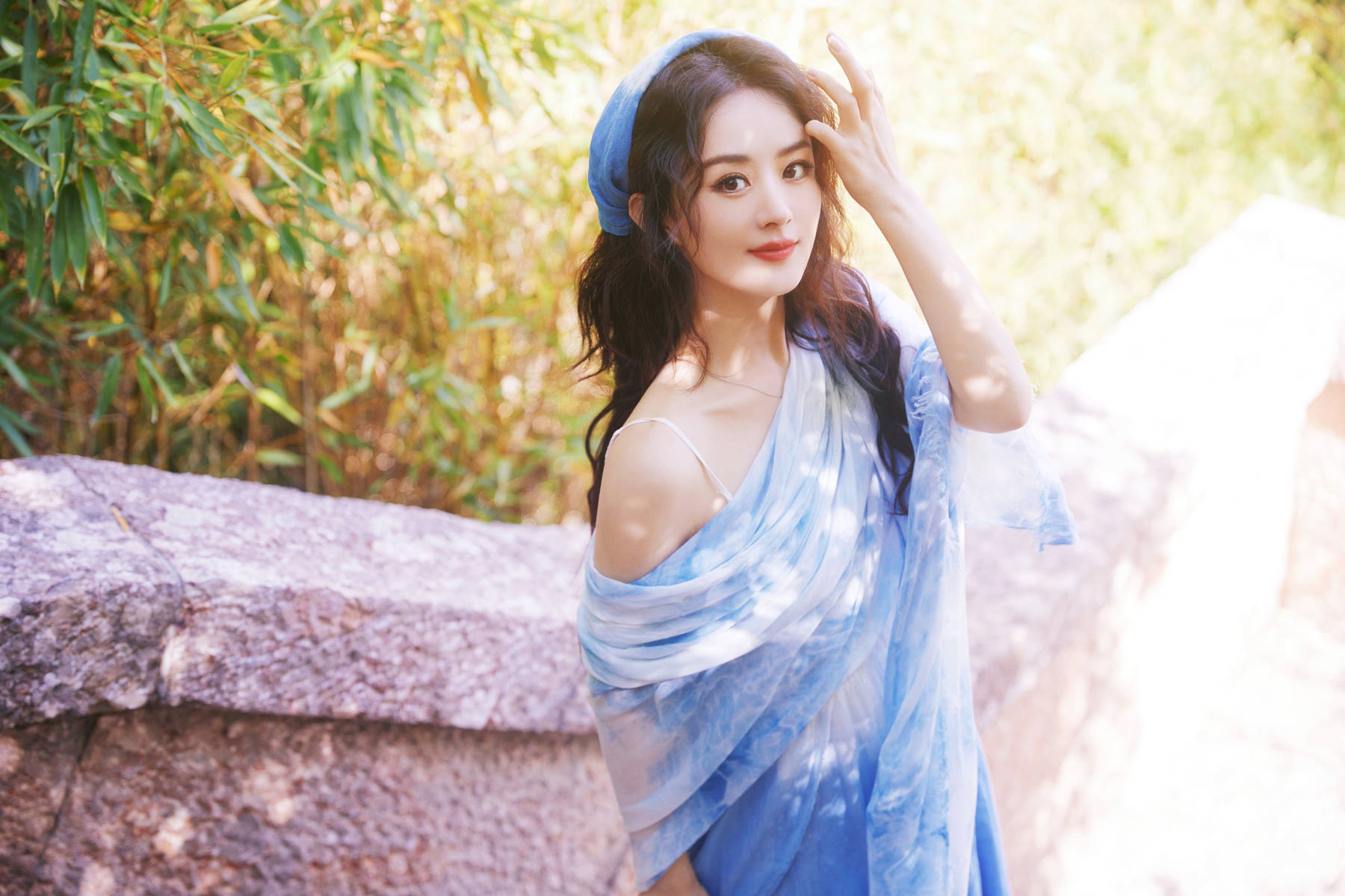 趙麗穎工作室曬慶生照 穿藍色吊帶裙甜美如精靈