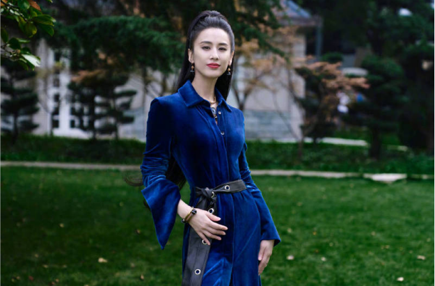 近日,黃圣依(明星經(jīng)紀(jì)公司)曬出一組室外草地寫真。黃圣依身穿藍色冰染天鵝絨長裙,高馬尾利落帥氣,烈焰紅唇,女王氣場十足