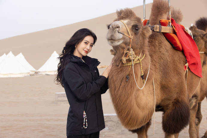 Angelababy現(xiàn)身沙漠參加活動 與駱駝貼貼笑容甜美