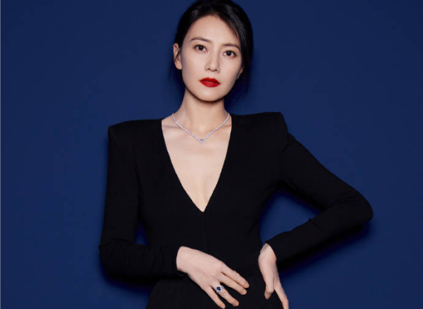 高圓圓穿黑色深V裝干練端莊 五官驚艷女神范兒十足