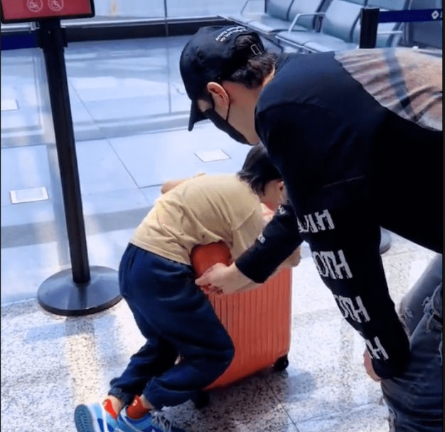 黃曉明帶著兒子現(xiàn)身機(jī)場(chǎng) 小海綿玩轉(zhuǎn)行李箱超可愛