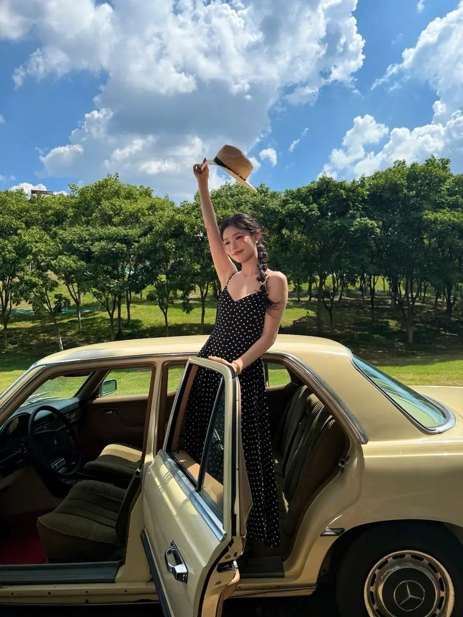 27日,林允(明星經(jīng)紀(jì)公司)在社交平臺上曬出一組戶外美照,她身穿黑色波點吊帶長裙,站在車?yán)锾匠錾碜优恼眨瑺顟B(tài)松弛,美貌養(yǎng)眼!