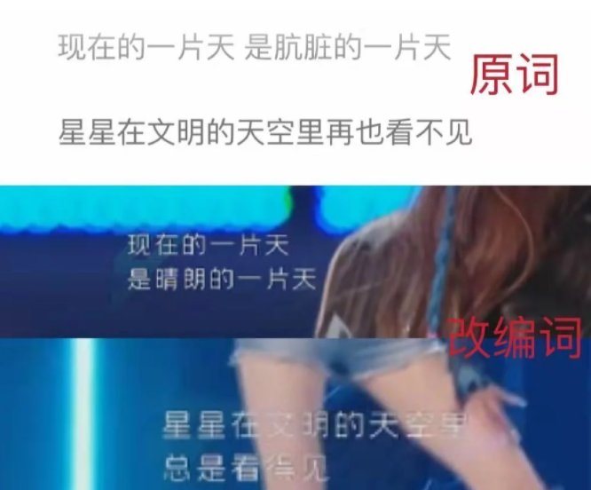 王心凌版的《星星點(diǎn)燈》對原版歌詞作出了較大改編,譬如把原歌詞“現(xiàn)在的一片天 是骯臟的一片天 星星在文明的天空里再也看不見”,改成了“現(xiàn)在的一片天 是晴朗的一片天 星星在文明的天空里 總是看得見”。