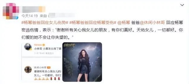 自從楊冪受傷后,粉絲們對(duì)她保持著高度關(guān)注,四處詢問她的近況,還有無數(shù)粉絲追問了楊冪父親的社交賬號(hào)。