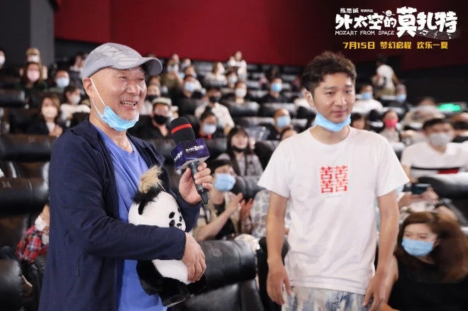 杜江、霍思燕的兒子嗯哼也出現(xiàn)在了觀影現(xiàn)場,陳思誠導(dǎo)演與他對起了全國小朋友的接頭暗號:“愛你孤身走暗巷”,嗯哼立馬接出下句,并引得全場小朋友的小聲跟唱?,F(xiàn)場是孩子們的樂園,看片過程中孩子們的笑聲此起彼伏,“想要一個莫扎特”成為孩子間的共識。
