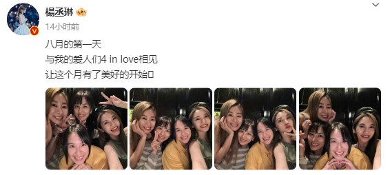 近日!楊丞琳(明星經(jīng)紀公司)曬出4 in love重聚合照,并配文稱:“八月的第一天,與我的愛人們4 in love相見,讓這個月有了美好的開始。”