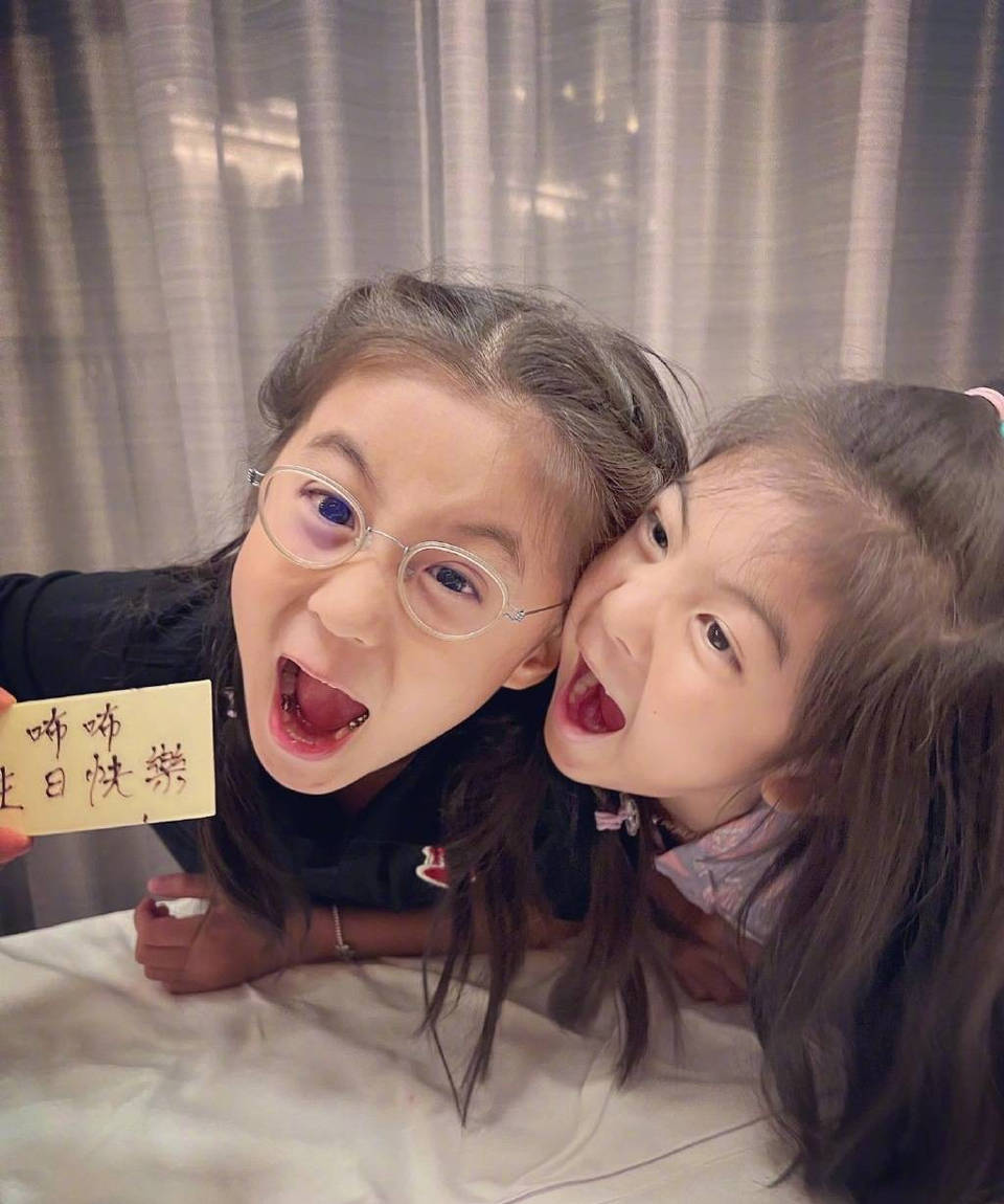 咘咘大眼睛水靈可愛,和妹妹合照。