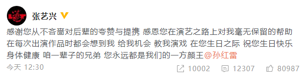 張藝興連續(xù)九年為孫紅雷慶生:咱一輩子的兄弟