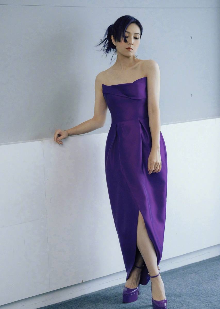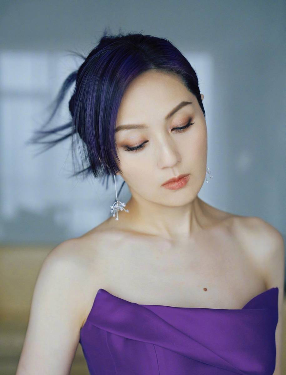 楊千嬅出席央視財(cái)經(jīng)晚會(huì) 紫色抹胸造型溫婉大氣