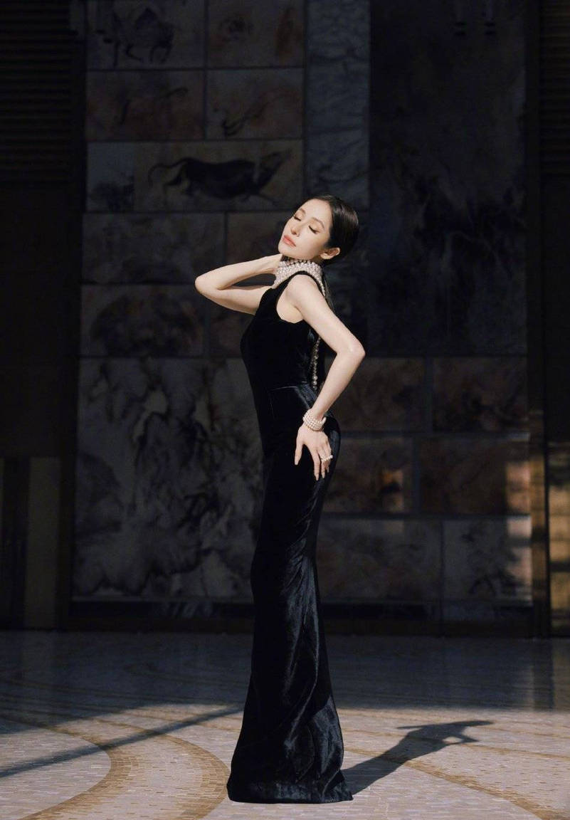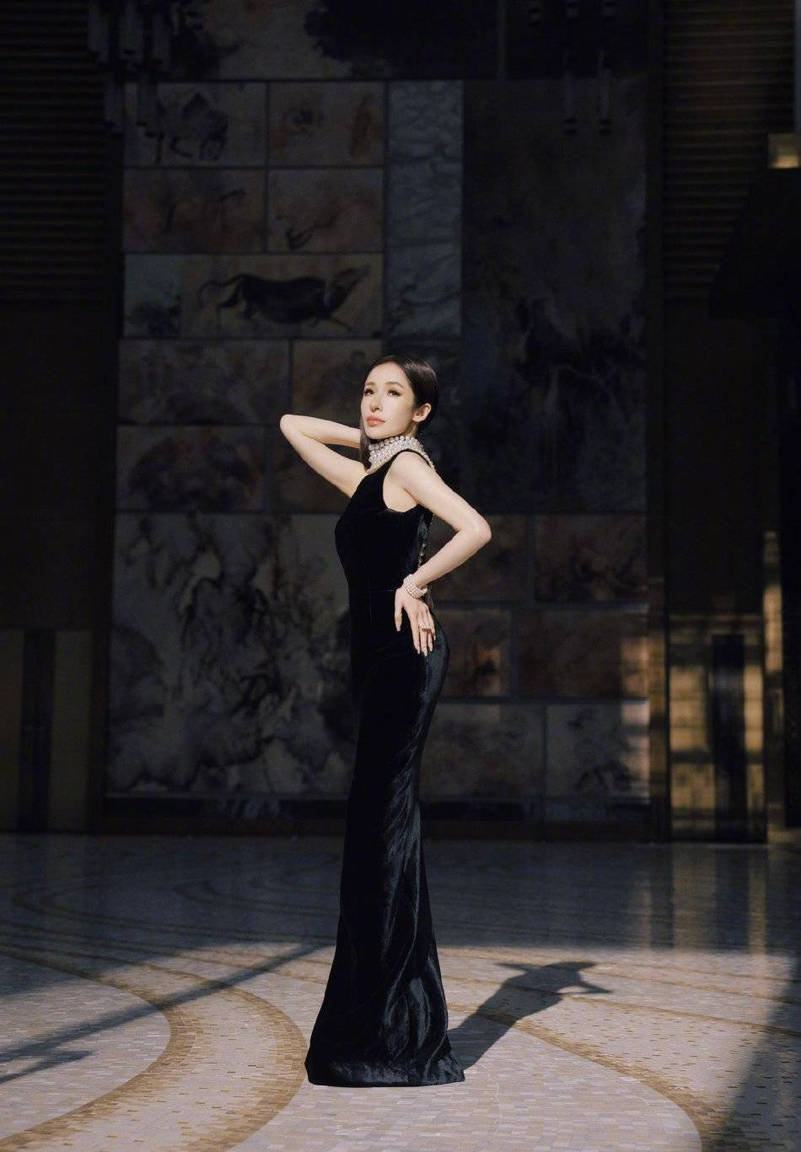 蕭亞軒穿黑色無(wú)袖長(zhǎng)裙氣質(zhì)高貴優(yōu)雅。