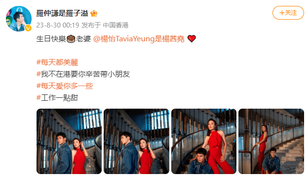 星全文化明星經(jīng)紀(jì)公司資訊:8月30日凌晨,羅仲謙發(fā)文為老婆楊怡(明星經(jīng)紀(jì)公司)慶生:“生日快樂,老婆!我不在港要你辛苦帶小朋友,每天愛你多一些。”他還曬出雙人大片,男帥女美氛圍感十足。
