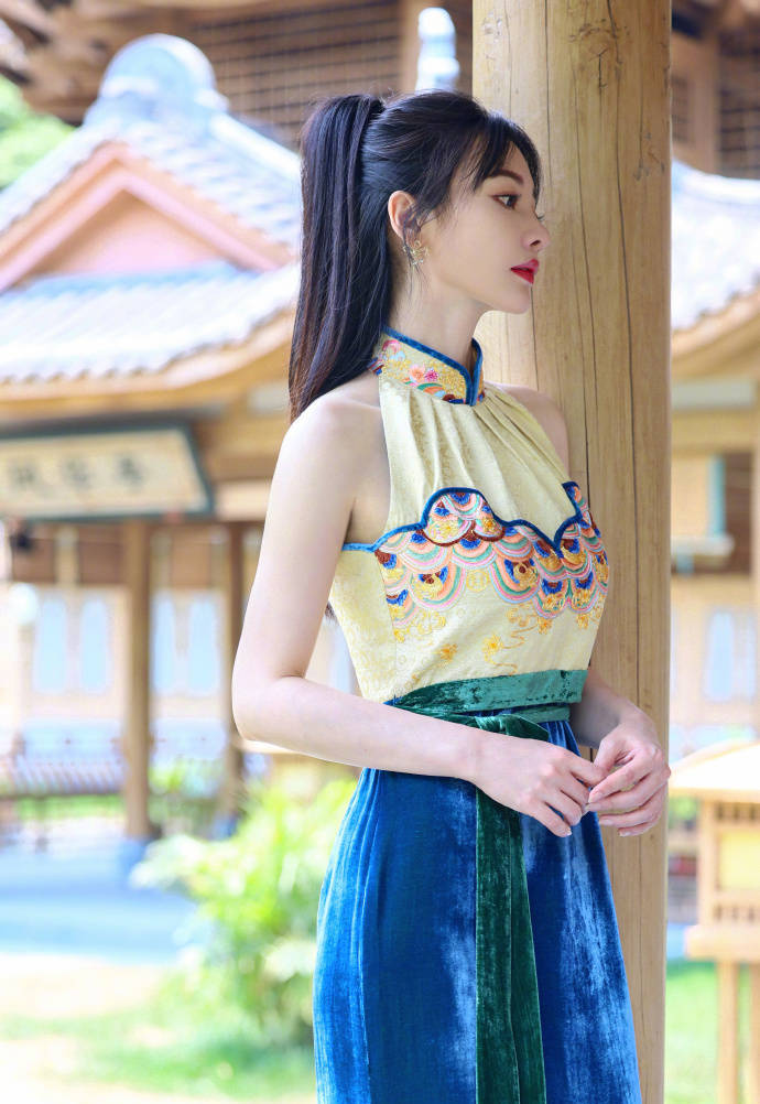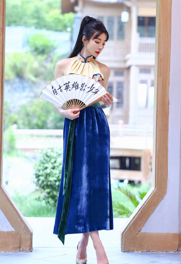 星全文化明星經(jīng)紀(jì)公司資訊:柳巖(明星經(jīng)紀(jì)公司)曬出幾張夏日工作美照,金藍(lán)色露肩掛脖旗袍,端莊大氣,優(yōu)雅靚麗。