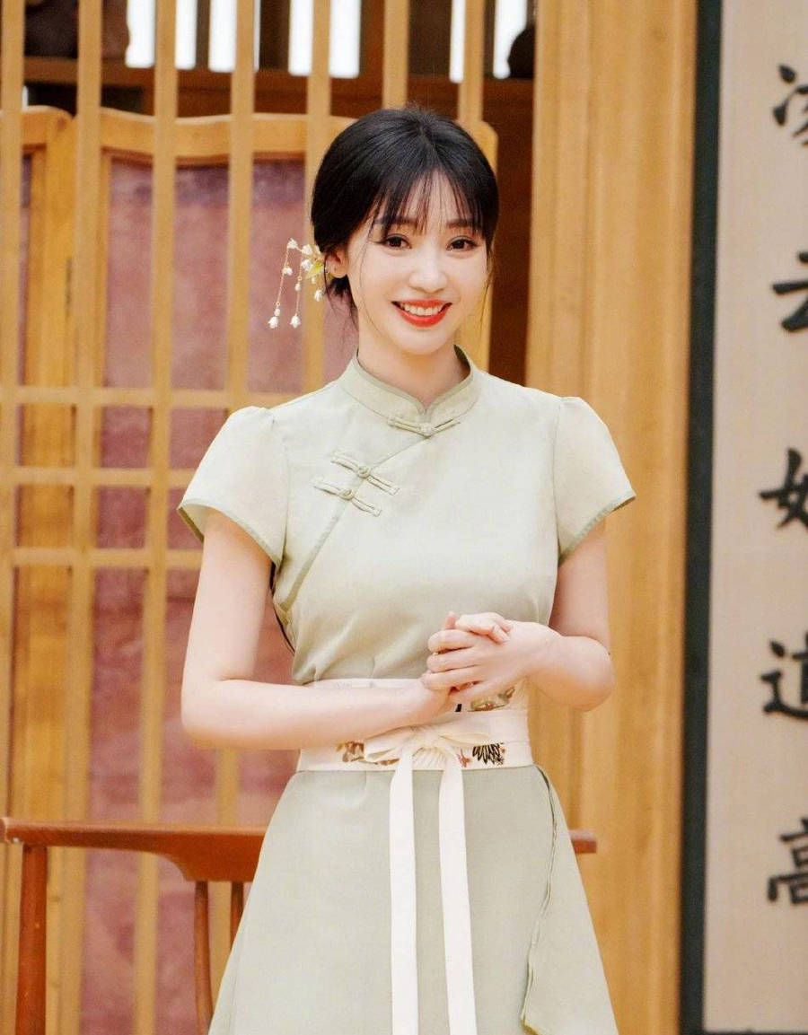 柳巖穿傳統(tǒng)色旗袍,身材比例好。