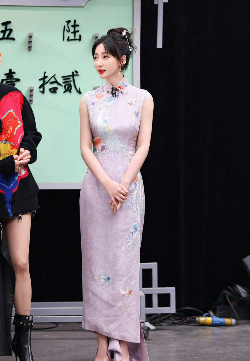 柳巖淡紫色旗袍妥妥古典美人。