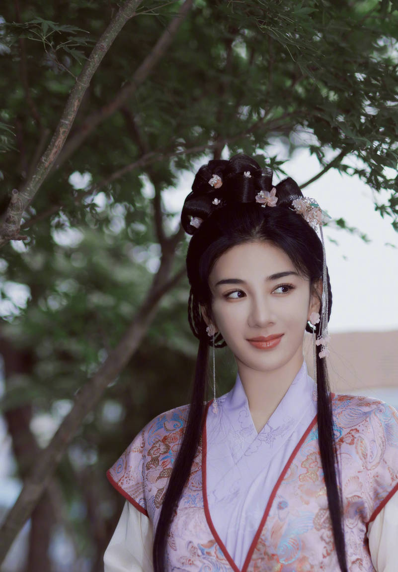 黃奕頭戴朱釵步搖,妝發(fā)風(fēng)格很復(fù)古。