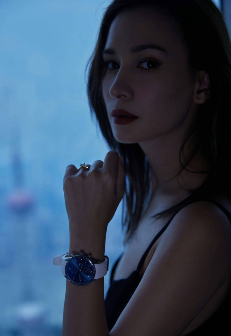 盧靖姍發(fā)絲飛揚(yáng),肌膚光滑。
