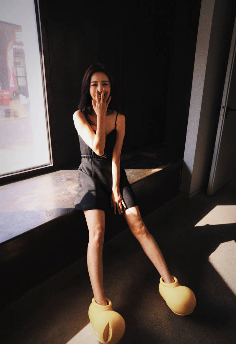 9月14日,佟麗婭(明星經(jīng)紀(jì)公司)曬出一組日常美照,身穿黑色吊帶短裙卻腳踩一雙大號(hào)黃色搞怪拖鞋,在性感和童趣中來(lái)回橫跳。