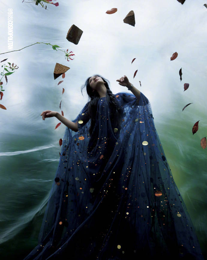 劉詩(shī)詩(shī)藍(lán)色紗裙好似仙女飛天。