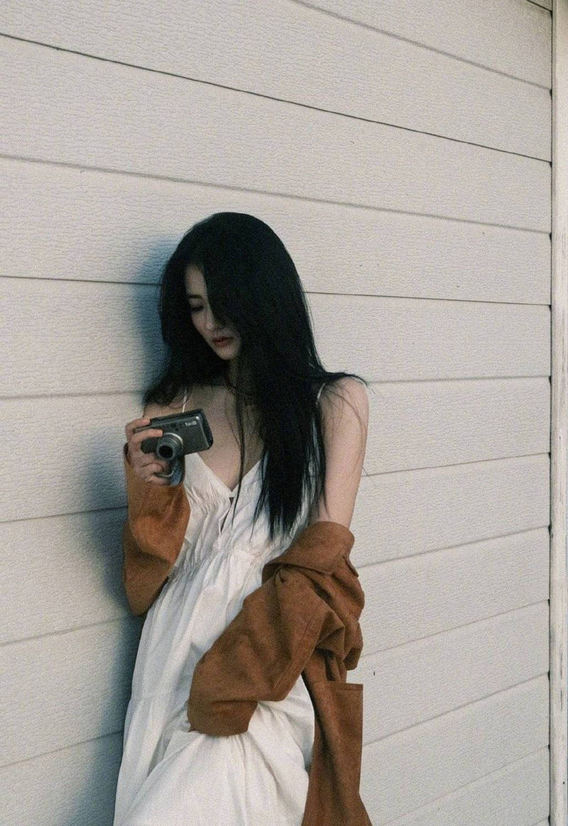 徐璐深V長裙小秀性感 烏絲及腰演繹清冷白月光
