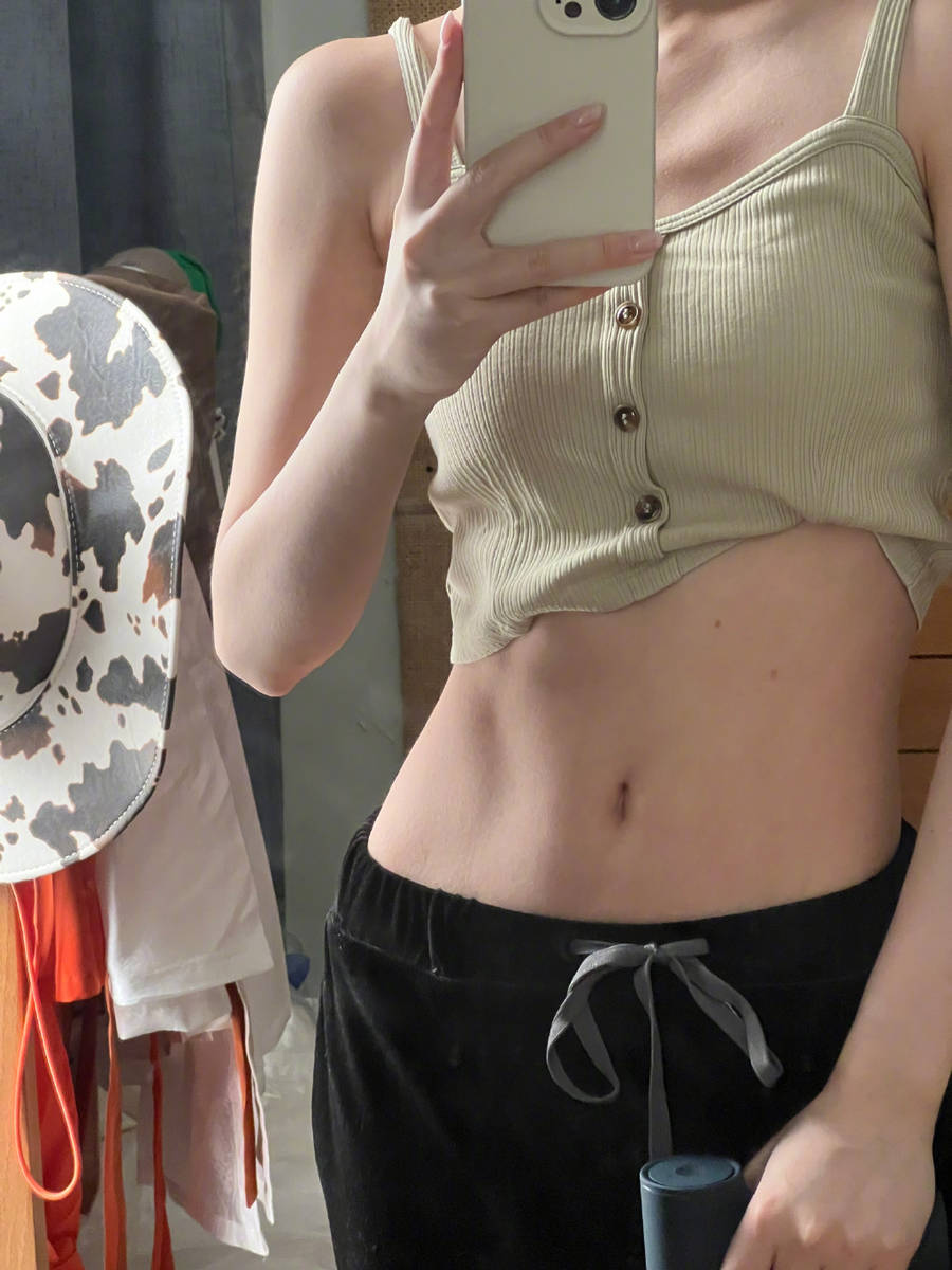 徐嬌對(duì)鏡自拍曬馬甲線。